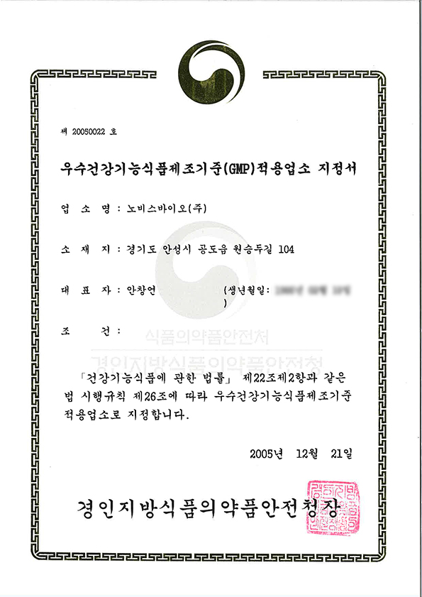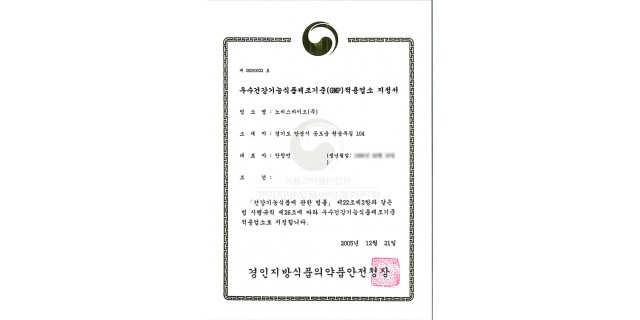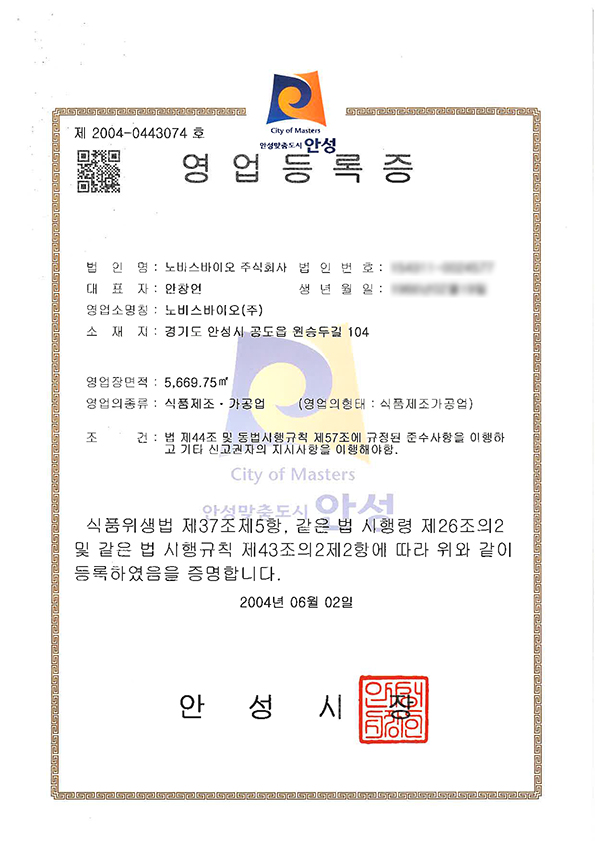 영업허가증-건강기능식품전문제조업