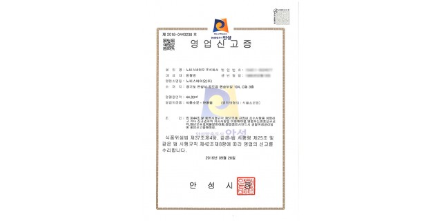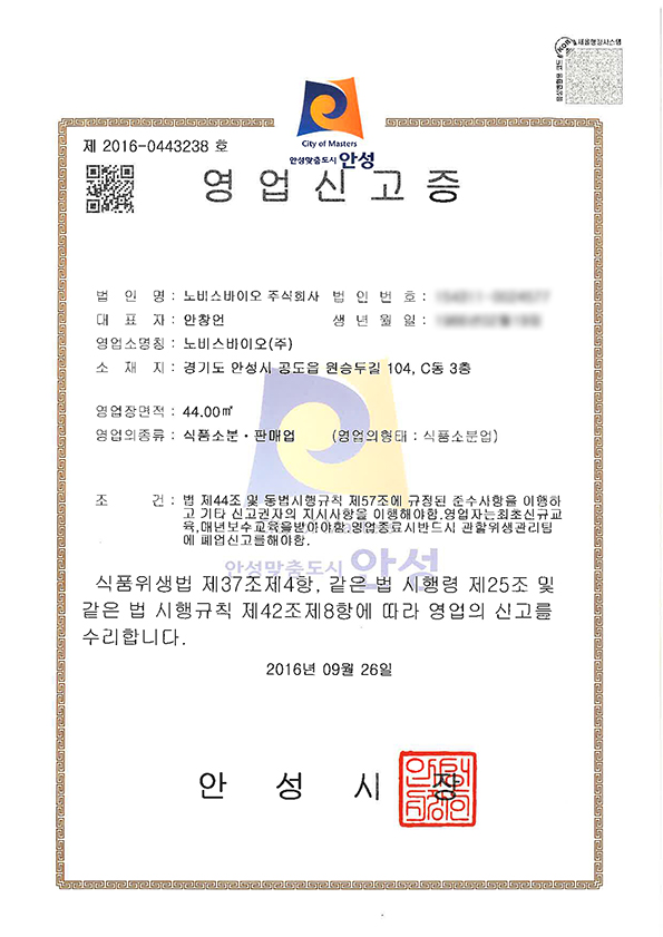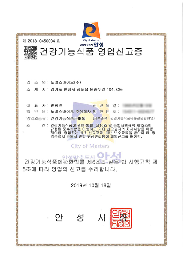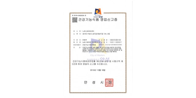 건강기능식품 영업신고증