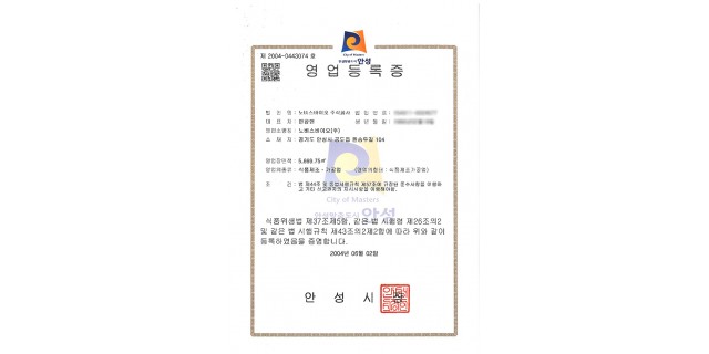 영업등록증-식품제조가공업