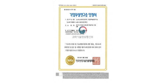 기업부설연구소 인정서