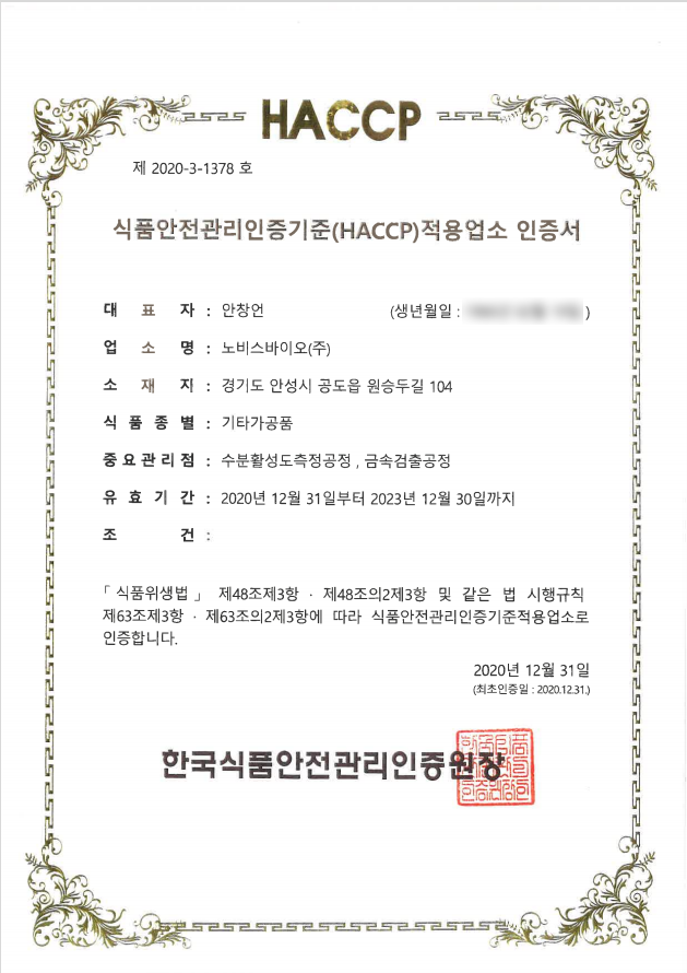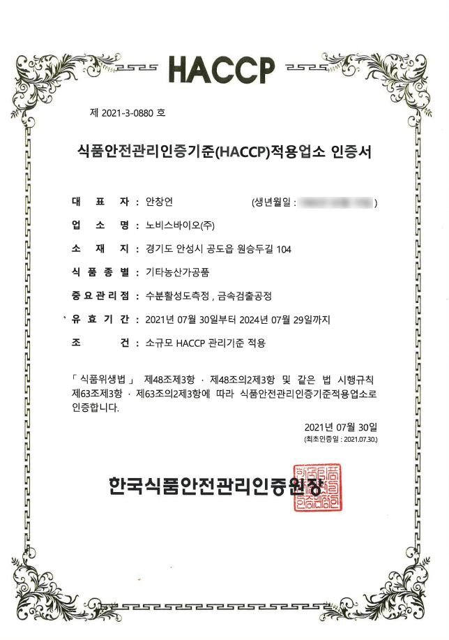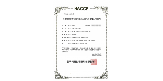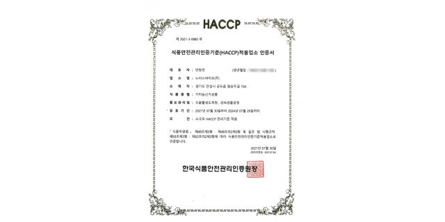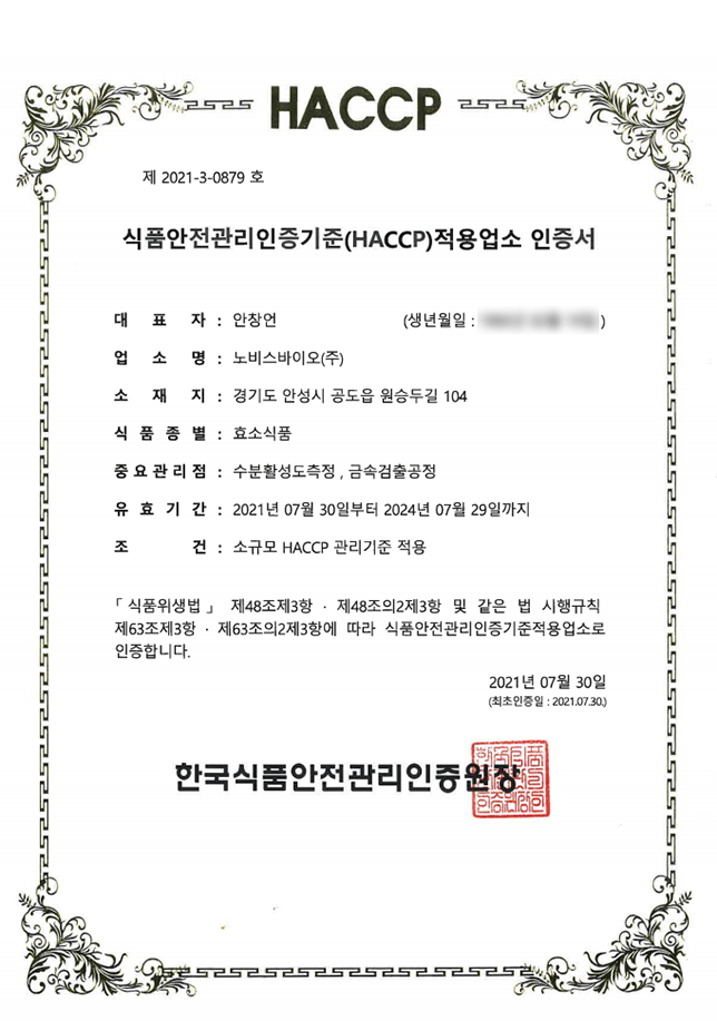 HACCP 인증서 (효소식품)