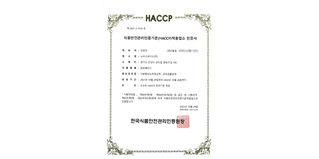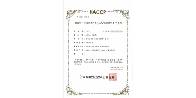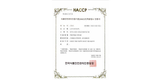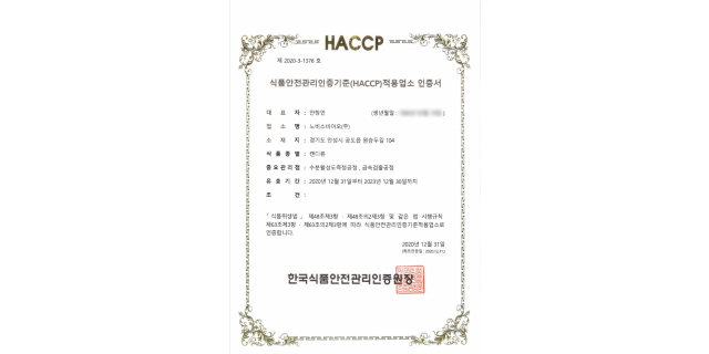 HACCP 인증서 (기타가공품)
